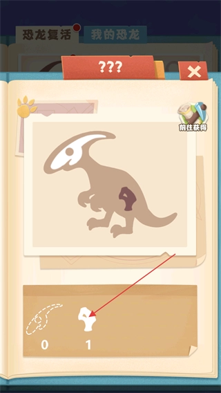 在图鉴的恐龙复活界面里,找到进度条已填满的恐龙图片并点击它。