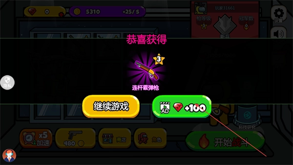 成功获取新武器后,点击观看视频就能领取额外的钻石奖励。