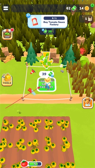 通过售卖之前收获的农作物与积攒的物品来赚取金钱,进而购置新的区域模块开展建设工作。