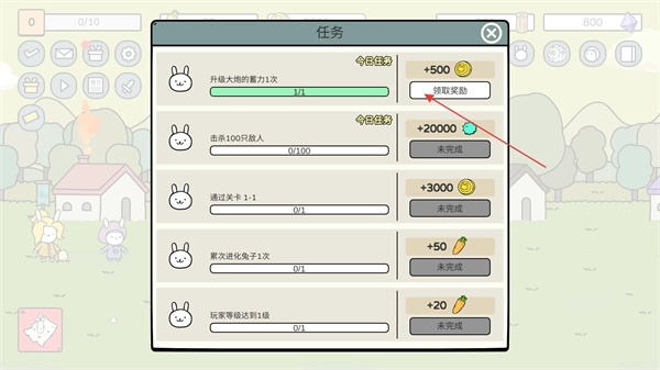 回到任务界面,点击领取奖励,就能获得升级大炮所需的1次蓄力奖励。
