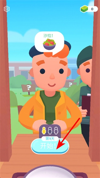 在关卡准备界面,先查看顾客所需菜品(比如沙拉),接着点击开始按钮进入制作环节,这是开启菜品制作的基础步骤,之后还得依照步骤完成食材处理与烹饪操作。
