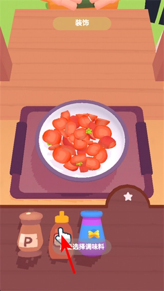 食材处理完毕后,就进入装饰环节了。此时需要挑选合适的调味料添加到菜品里,这样既能让菜品的口味更丰富,外观也更诱人,从而提升顾客的满意度,最终完成这道菜品的制作任务。