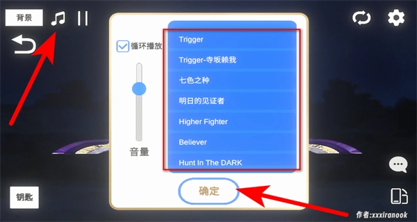 点击界面上的音乐按钮打开列表,挑选音效后点击确定,这是更换模拟器音效的关键步骤,搭配形态效果能提升体验感。