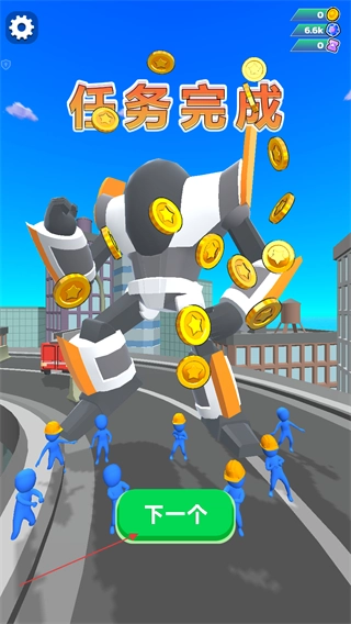 成功击败敌人后,界面会弹出任务完成的提示,点击下方的“下一个”按钮,就能进入下一个战斗关卡,挑战新的敌人目标。