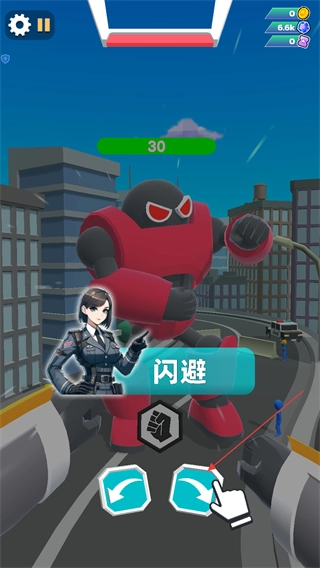 在战斗过程中,当敌方发动攻击时,界面会出现闪避提示,此时点击下方的双向箭头按钮,就能操控机甲执行闪避动作,从而避开伤害。