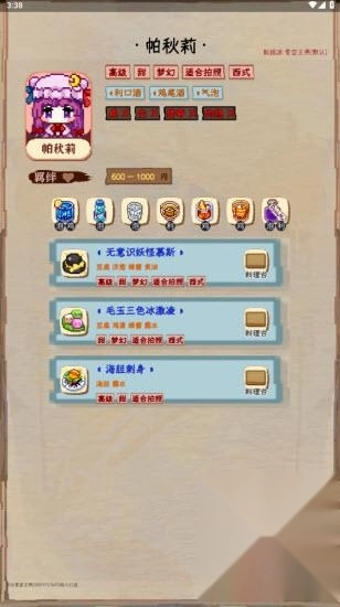 角色信息介绍:App涵盖了《东方夜雀食堂》游戏里全部人物的详尽说明。这些角色按照客户类型进行分类,像人类、妖怪、神明等,如此一来玩家就能迅速定位到他们感兴趣的角色。