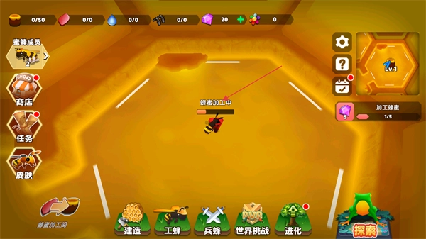 采集资源后将其运送至蜂蜜加工间,此时界面会显示蜂蜜正在加工中,只需等待加工完成就能获取资源,从而为游戏后续的发展进程提供助力。