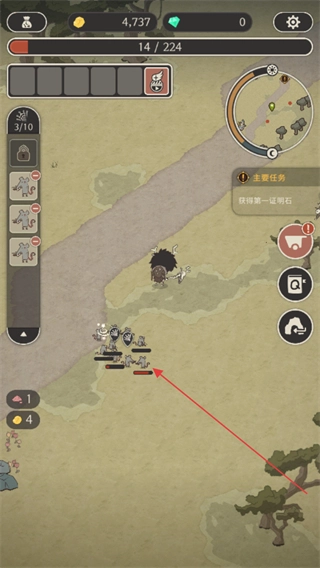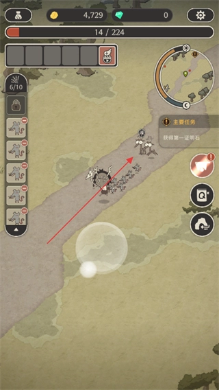 操控角色队伍移动,推进获取第一只明石的主线任务,朝着目标怪物的方向前进。
