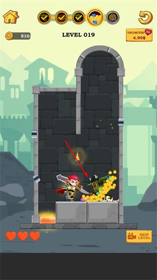 以救援公主作为剧情推进的核心线索,通过夺取宝藏来收集各类资源,这些宝藏不仅能解锁英雄皮肤,还可获取辅助道具,为关卡挑战注入额外的激励,让每一关的冒险都拥有清晰明确的目标与追求。