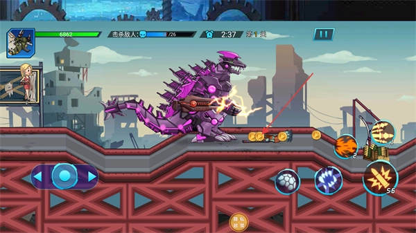 以恐龙机甲作为核心创作题材,把恐龙的形态特征和机甲的科技元素进行融合,设计出丰富多样的机甲形象。这些机甲造型既充满了强劲的力量感,又具备浓郁的科幻气息,完美契合动作闯关类游戏的热血氛围,使得机甲之间的战斗呈现出更强的视觉冲击力。