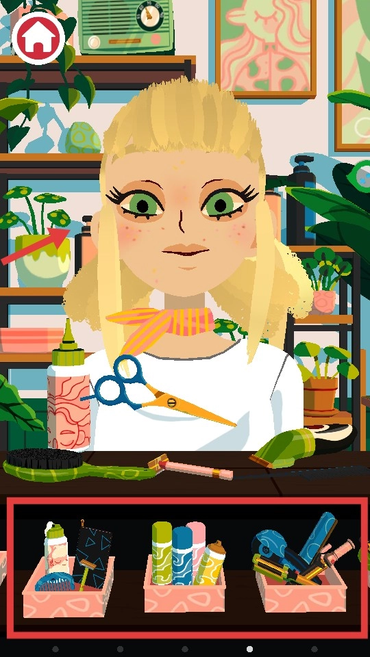 在美发场景中,你需要从下方陈列的各类美发工具和用品里,挑选出合适的来为人物设计发型。
