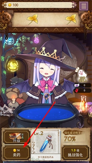 当药水升级到更高等级后,点击左侧的卖药按钮,把当前等级的药水卖掉,就能获得金币资源。