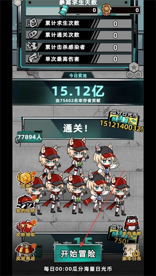 当前界面显示今日奖池为15.12亿,点击底部的“开始冒险”按钮,就能开启对应的游戏冒险进程。