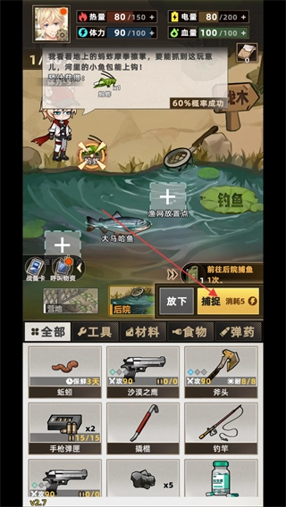 在这个界面里,点击场景中的动物(比如蚂蚱之类的),再点击下方的捕捉按钮,就能把它们获取并放进下方的背包里。