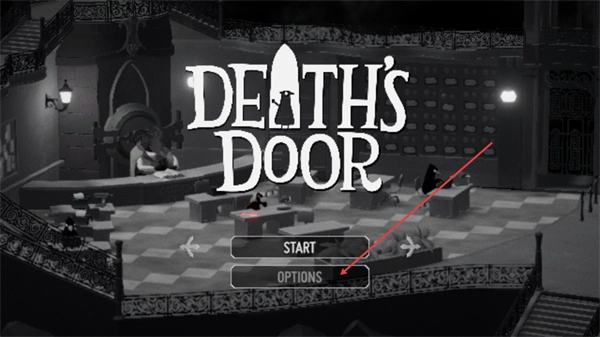 这是死亡之门的启动界面,界面上呈现着游戏标题以及START、OPTIONS两个按钮,要是点击OPTIONS按钮,就能进入游戏的设置页面去调整相关的选项。