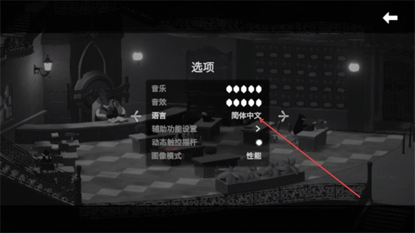 在OPTIONS的LANGUAGE选项里选定简体中文后,界面就会切换成中文显示,这样就完成了游戏语言的设置步骤。