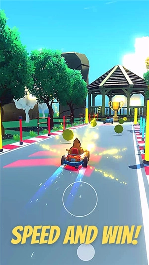 3、收集金币,道具和奖杯来提高你的排名和声誉,并解锁更多的卡丁车和功能。