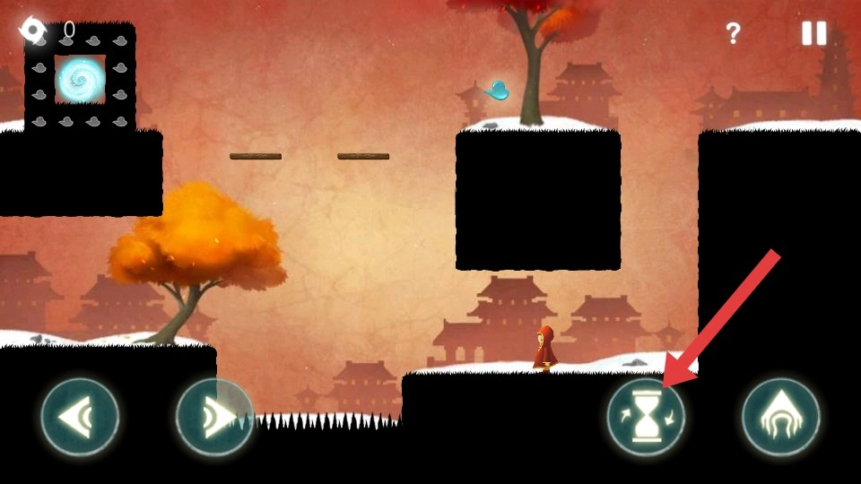 2、当角色移动到合适位置后,点击右下角【沙漏】的技能按钮,触发翻转时空。