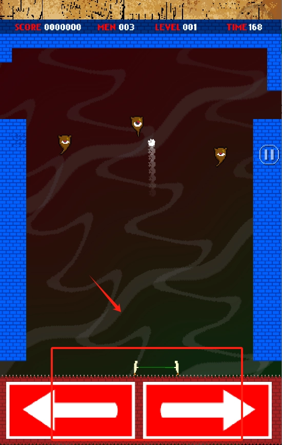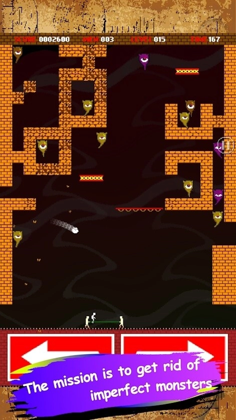 通过点击屏幕底部左右两侧的按钮来操控角色移动,在躲避怪物的同时击败它们,以此获取更高的分数。