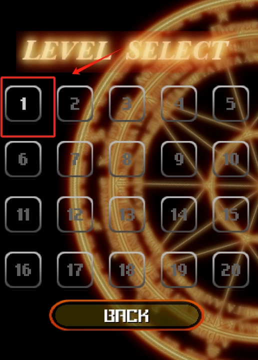 看红框里标着的数字1,直接点击关卡数字按钮,从1到20里选任意一关就能开始挑战啦。