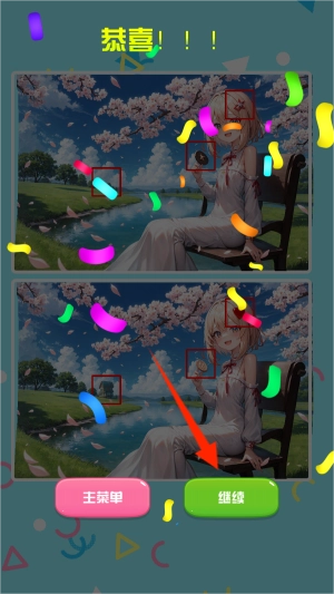 当你成功找出所有三个不同之处后,屏幕会呈现出庆祝的特效,并且系统会自动为你解锁下一个关卡。