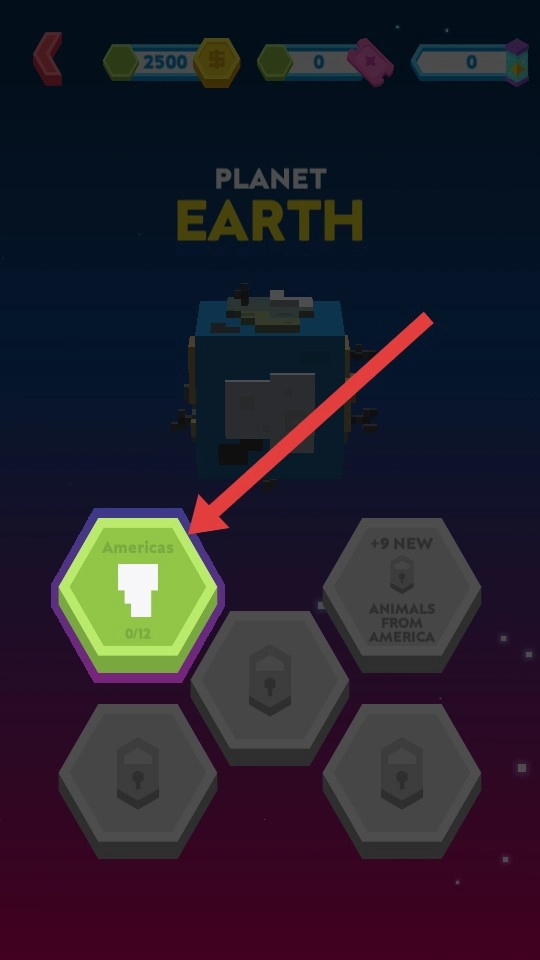 3、进入新界面后,点击选择【Americas】区域,查找能够拯救的动物。
