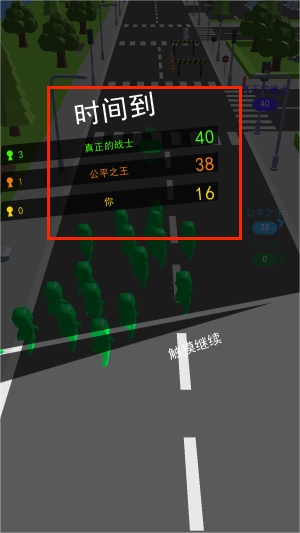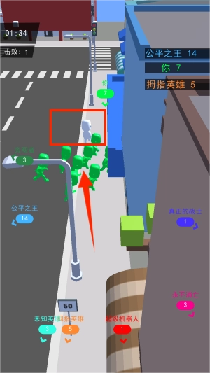找到白色的小伙伴,大家集合起来一起向前冲,它会和你一样变成绿色的小人,右上角显示的是你的排名。