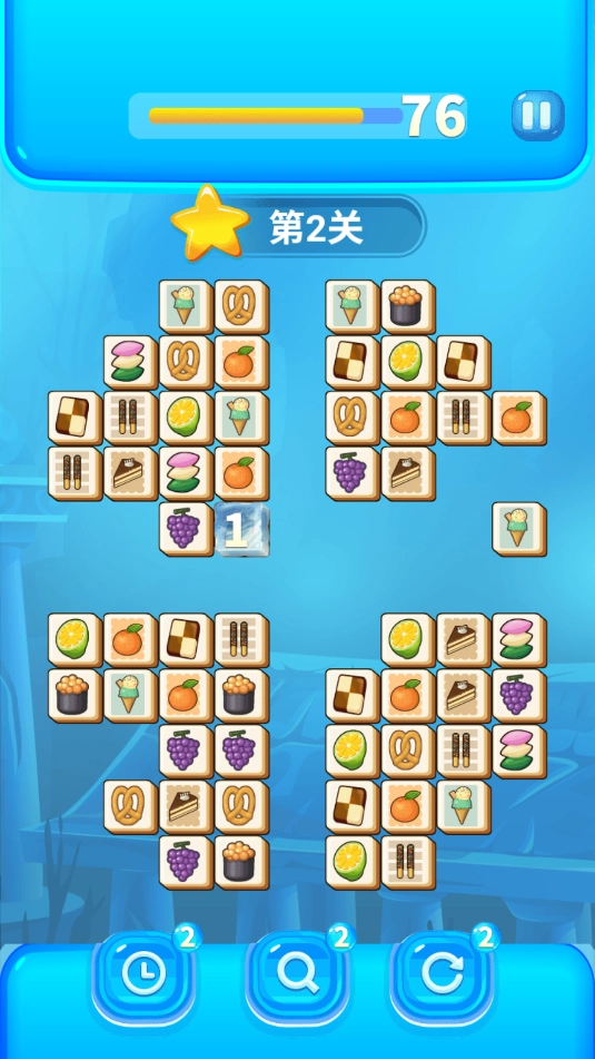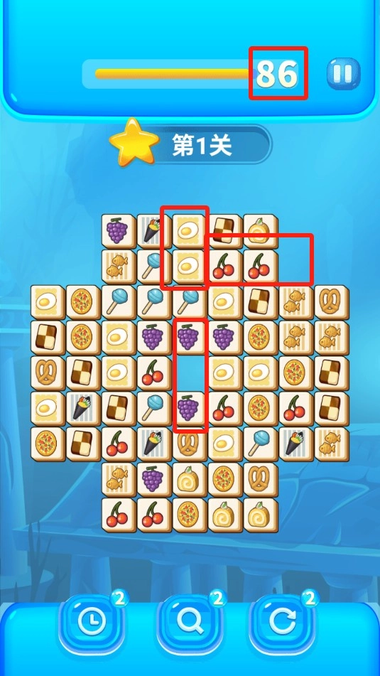 2、关卡中需点击两个相同食品来进行消除,可以先点击最近的,再消除远的。