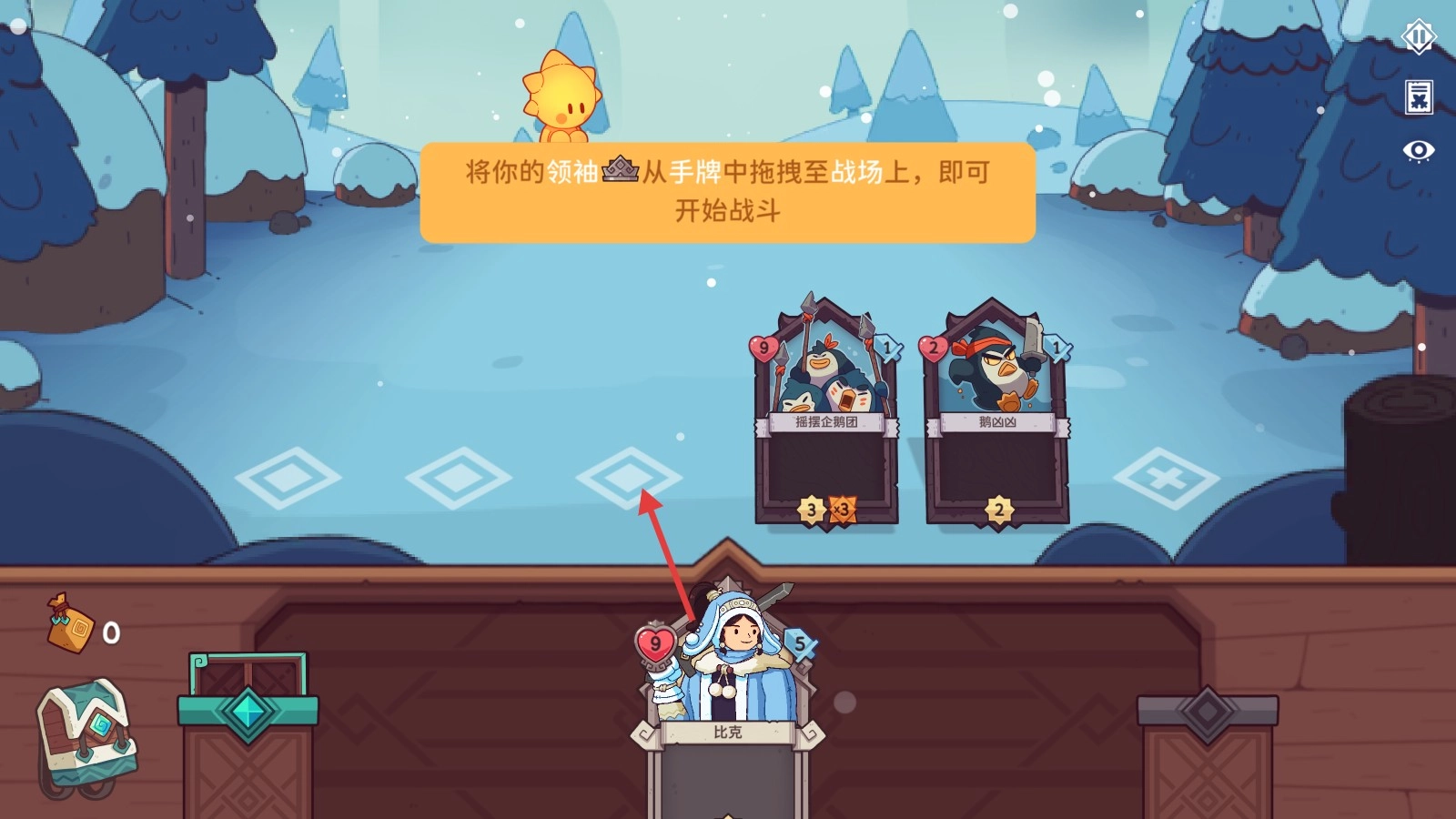 1、我们需将领袖卡牌【比克】从手牌拖拽至战场,奠定战斗开局,开启卡牌对决之旅。