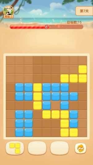 游戏的核心玩法是放置方块来达成可消除的组合:当三个及以上相同方块连在一起时就能消除;特殊方块需要用特定方法才能触发效果;如果时间用完,挑战就会结束;而只要达到目标分数,就算顺利通关。