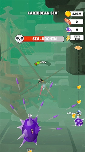 当鱼类进入角色的攻击范围时,只需点击就能对其发起攻击。
