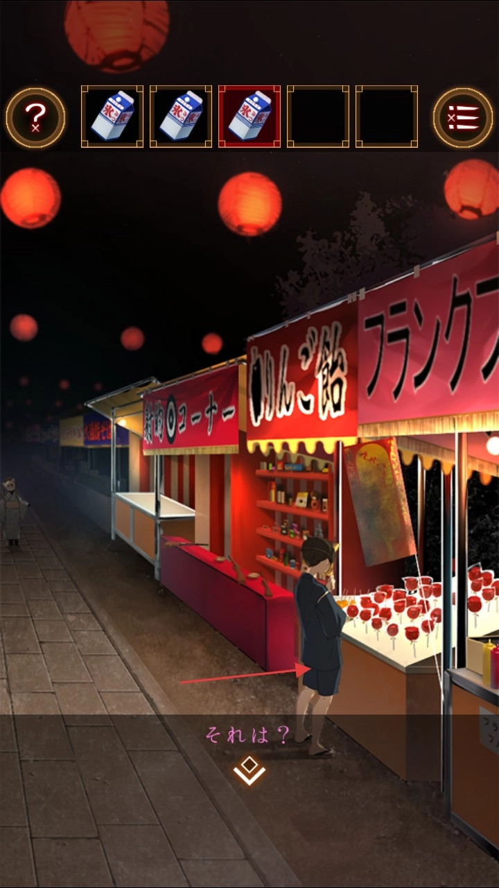 《脱出缘日》是一款以日本街头庙会为背景的逃亡解谜手机游戏。玩家需在庙会的主要街道上搜寻线索,以此逃离这个令人不安的地方。