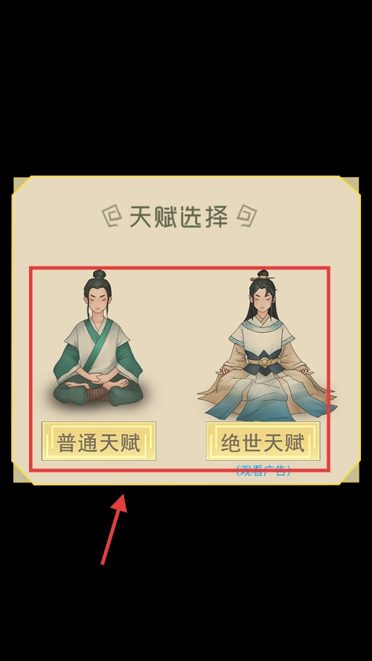 选“普通天赋”直接玩,或看广告选“绝世天赋”。