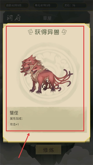 获得异兽【饕餮】能够增强攻击属性,为后续战斗和历练环节的推进提供助力。