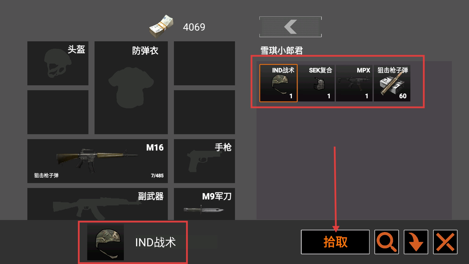 在仓库界面获取【IND战术】头盔和【MPX】武器,穿戴装备后能增强战斗能力,让撤离任务的完成难度降低。