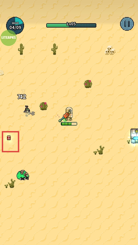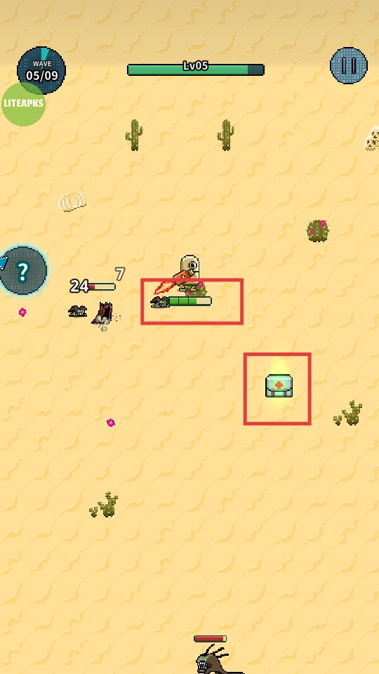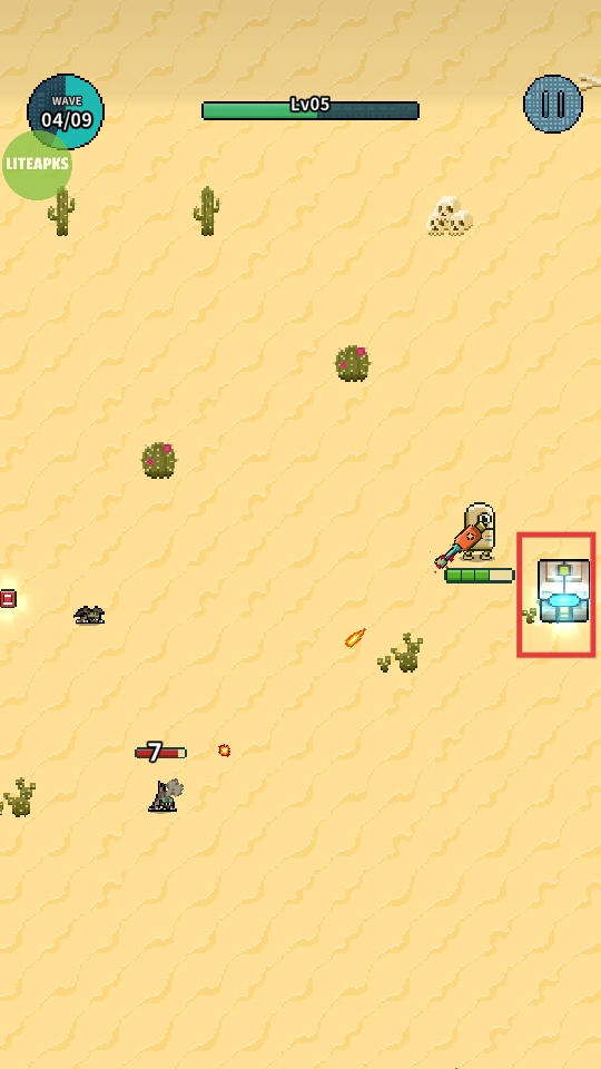 在沙漠场景里展开战斗,击败敌人,收集道具,推动波次进度。
