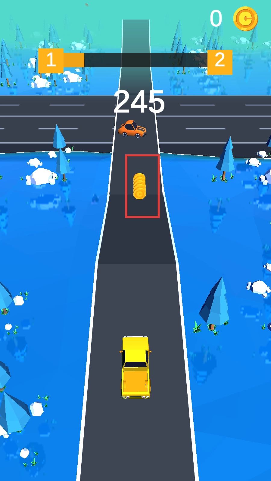 长按屏幕能使黄色小车向前行驶,当遇到橙色车辆时,松开手指停车避让,注意别被它们撞出车道。