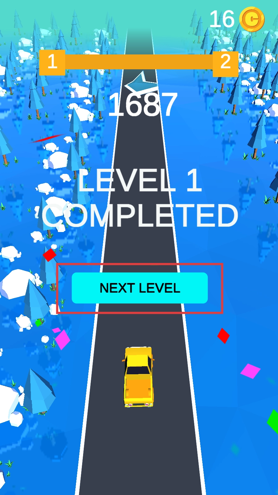 第一关通关后,点击【NEXTLEVEL】按钮,即可开启下一关的挑战,然后继续在高速公路上尽情驰骋吧。