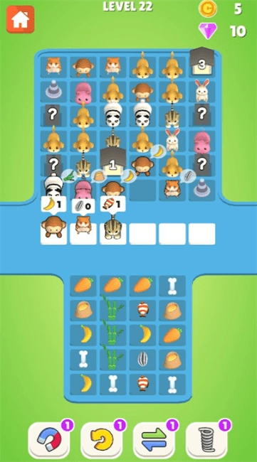 玩家将化身动物营养专家,借助趣味配对的玩法为各类动物定制专属饲料。游戏涵盖50多种萌趣动物,从家养宠物到农场牲畜,每一种都有着独特的饮食偏好。清新明亮的画风与治愈系音效相互配合,打造出轻松惬意的游戏氛围。随着关卡的不断深入,玩家能够解锁稀有动物和特殊配方,逐步成为全能的饲养高手。简单易操作的玩法中融入了动物科普知识,适合各个年龄段的玩家尝试体验。