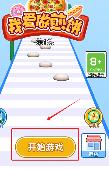当你看到那个红色的“开始游戏”按钮时,用手指轻轻点击它,就能顺利进入煎饼制作关卡,开启游戏之旅啦。
