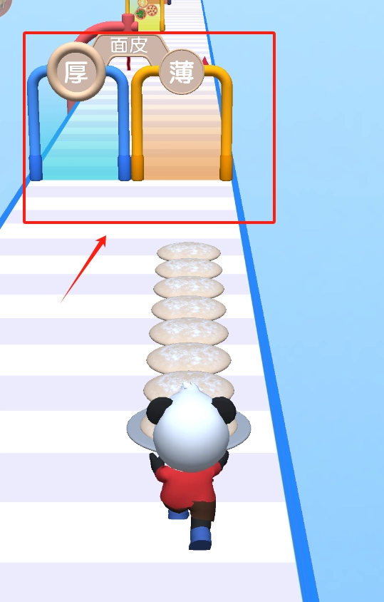 在奔跑的时候,得精准把控煎饼堆叠的高度,防止堆得太高而倾倒,或是碰到障碍物。