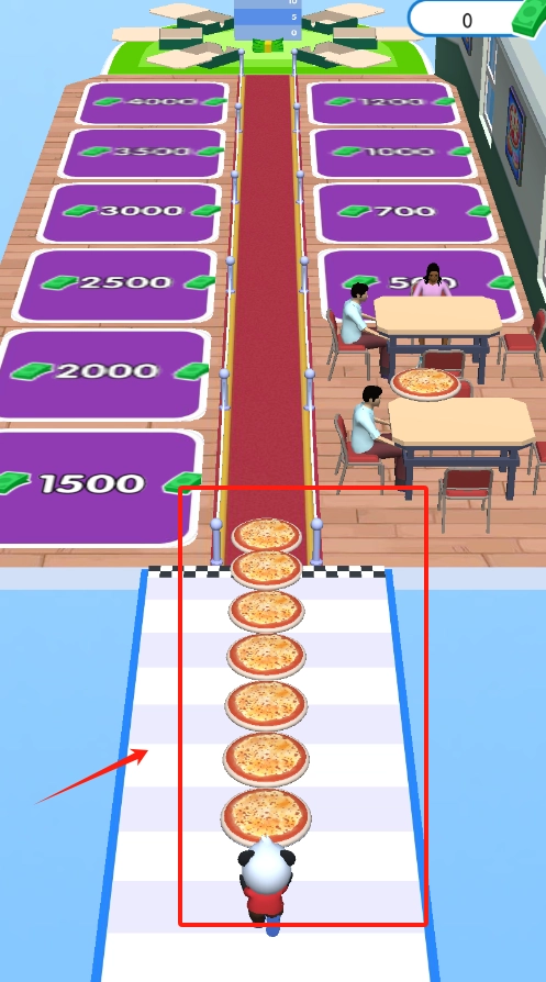 当头顶披萨的小人跑到金色钱币区域时,点击屏幕接住订单,就能收集更多钱币。