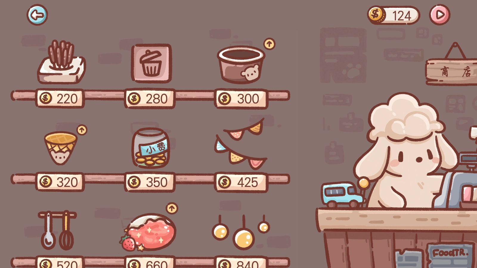用卖冰淇淋赚的钱从我们友好的羊店老板那里购买新的更好的冰淇淋设备。你可以买到新的冰淇淋原料,比如樱桃、饼干和巧克力华夫饼,升级冰淇淋的味道,还可以买到一台全新的抹茶制作机!