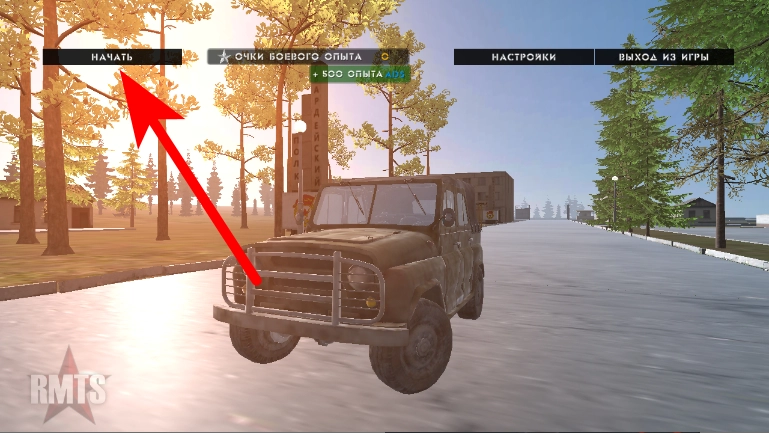 在游戏初始页面,点击НАЧАТЬ选项,进入车辆选择界面。