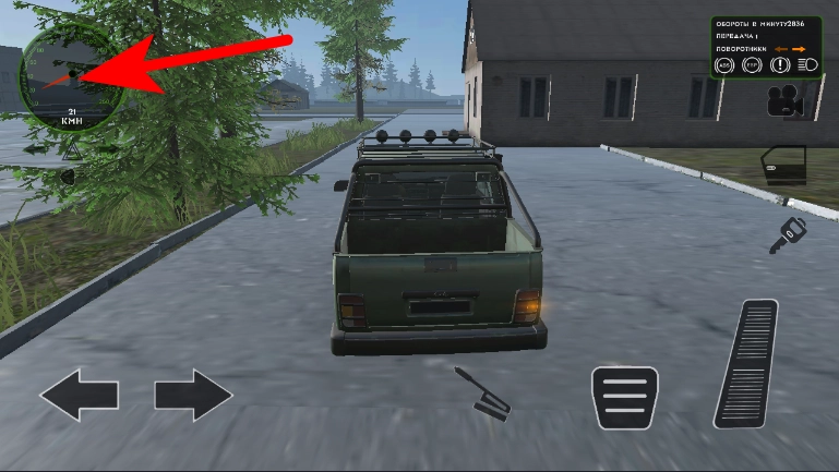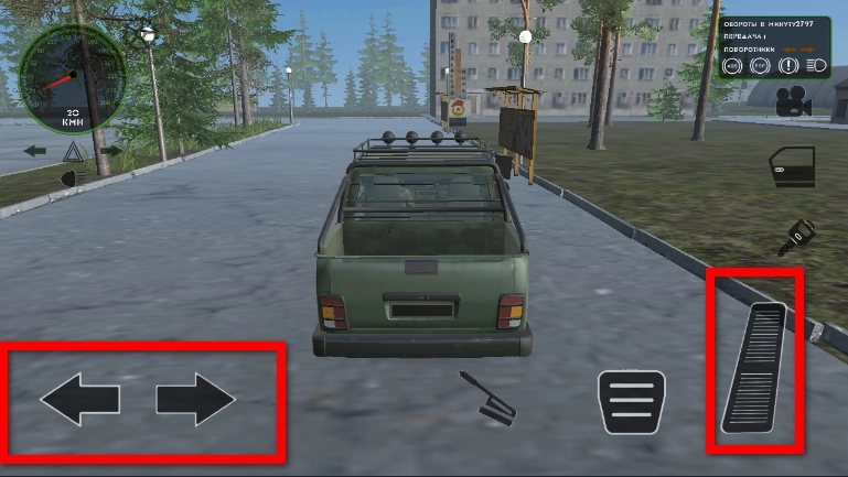 在驾驶操作界面,可借助左右箭头调整行驶方向,右侧踏板则用于控制车辆速度。