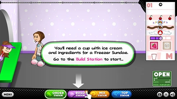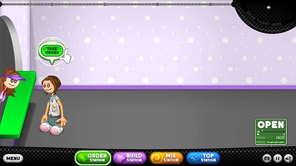 1、点击老爹冰淇淋店的“take order”按钮以协助客人完成点餐。
