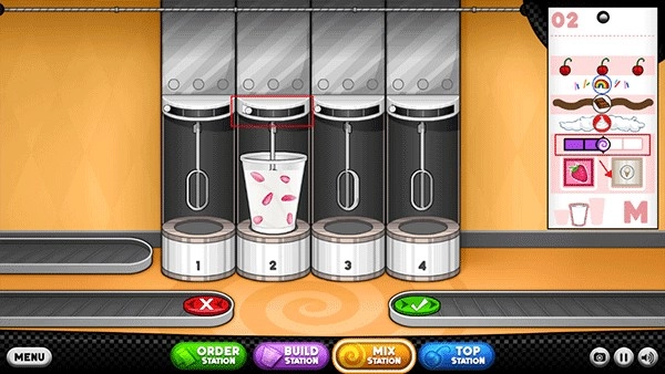 2、将每位顾客的订单详细记录在订购单上。你需要准备一杯冰淇淋以及冷冻Sundae所需的各种原料。随后,前往制作台开始着手制作。