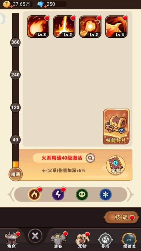 1、学习和搭配不同的技能,包括火、水、风、土等经典元素。