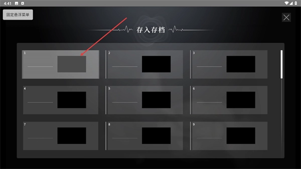 进入存档存储界面后,选定1号存档位置,就能把当前的游戏进度保存到这个位置上,以便后续接着进行游戏。