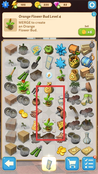 进入游戏场景后,找到两棵相同的种子苗并将它们合并。